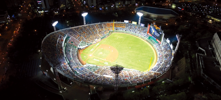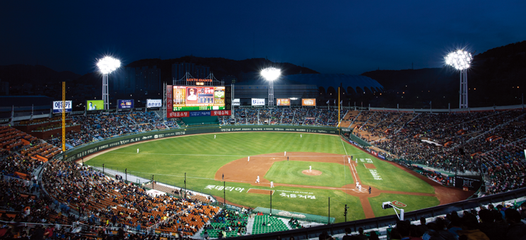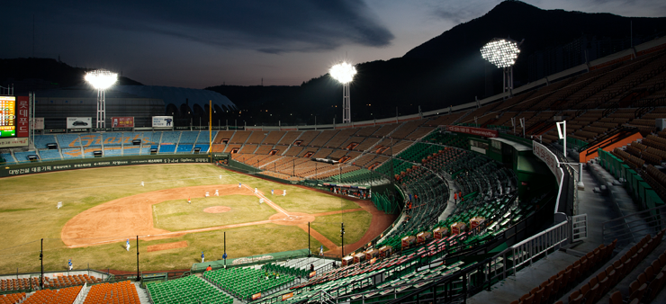 This project replaced all of the main, landscape, and internal lightings of Busan Sajik Stadium,the home ground of the professional baseball team “Lotte Giants” with Maloolighting LEDs. The 45-meter tower lighting system consists of 6 poles with 294 units of metal halide 2.2 kW (including ballasts) replaced with 420 units of MSFA 1.2 kW and 600 W.